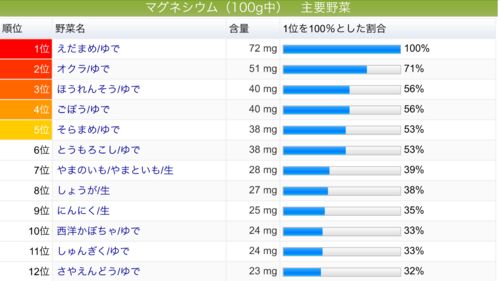 お友達に借りた本にマグネシウムをしっかりとれば病気にならない…みたいな事が書いてあったのでマグネシウムを多く含む食品てなんかな?野菜ナビってサイトで調べてみた。マグネシウム 主要野菜ふ〜ん枝豆か…じゃビタミンB1は?ん、枝豆?枝豆の上位締める割…